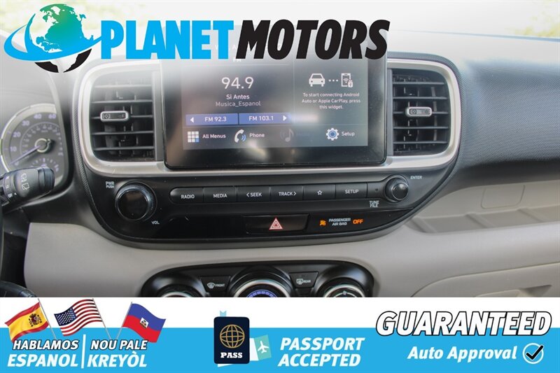 The factory default features of the 2021 Hyundai VENUE SEL include a user-friendly infotainment system with an 8-inch touchscreen display, Apple CarPlay and Android Auto integration, Bluetooth connectivity, and a 6-speaker sound system. Safety is paramount with standard features such as forward collision-avoidance assist, lane-keeping assist, driver attention warning, and a rearview camera.